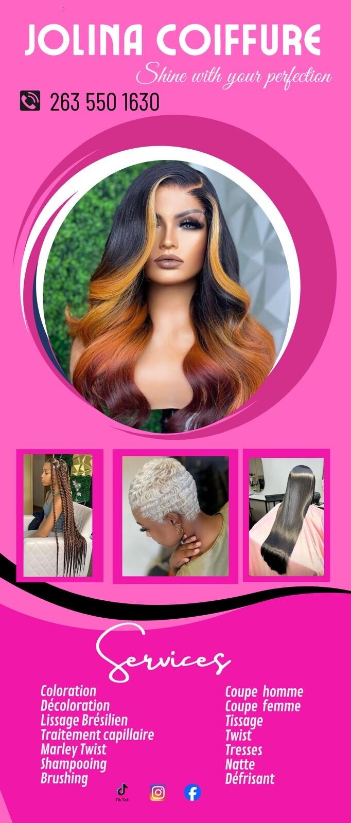 Chez Jolina Coiffure, chaque chevelure est une toile et chaque client(e) une inspiration. Des tresses africaines complexes aux coupes modernes, en passant par les lissages parfaits et les colorations éclatantes, nous créons des styles personnalisés qui célèbrent votre individualité. Notre équipe d'experts est dédiée à transformer vos envies en réalité, avec précision et passion, pour un résultat toujours à la hauteur de vos attentes.